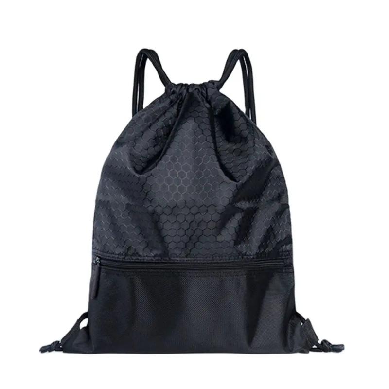 Description:Stay organized on the go with this versatile drawstring backpack that is perfect for storing your sports gear and essentials. Made of waterproof material, it's ideal for carrying soccer shoes, yoga mats, and more.Features: Versatile drawstring backpack for fitness training and travel Waterproof material to keep your sports gear dry...