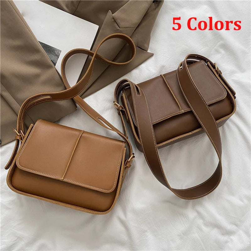 Flap Girls Shoulder Handbags Leather Solid Women Crossbody Bag
