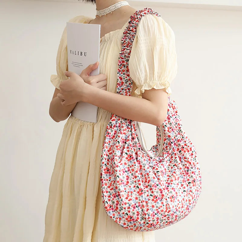 Floral Armpit Casual Shoulder Bag Pleated Messenger Bag