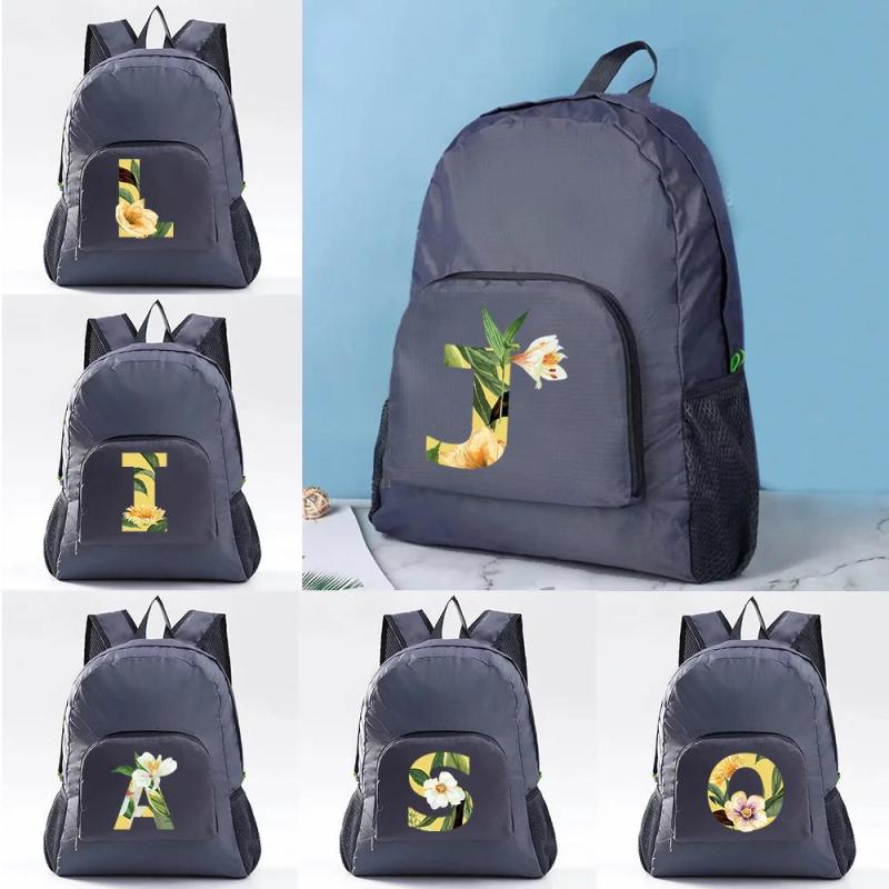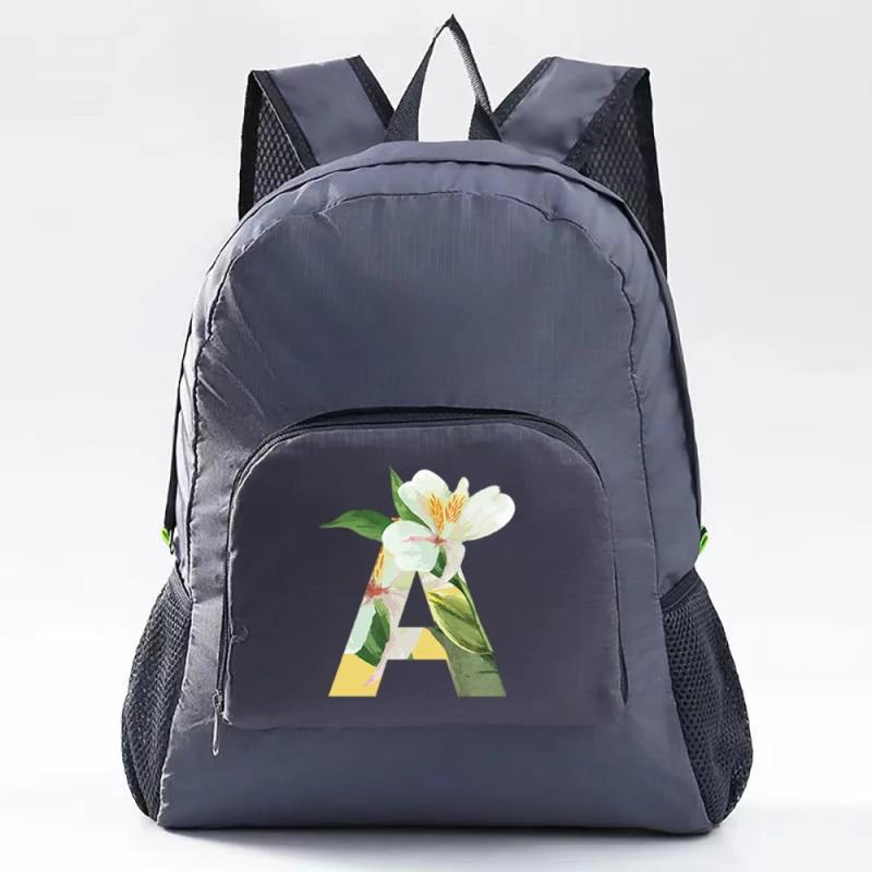 Stay prepared with this lightweight and foldable backpack, perfect for outdoor activities and traveling. Features a stylish floral letter print design.