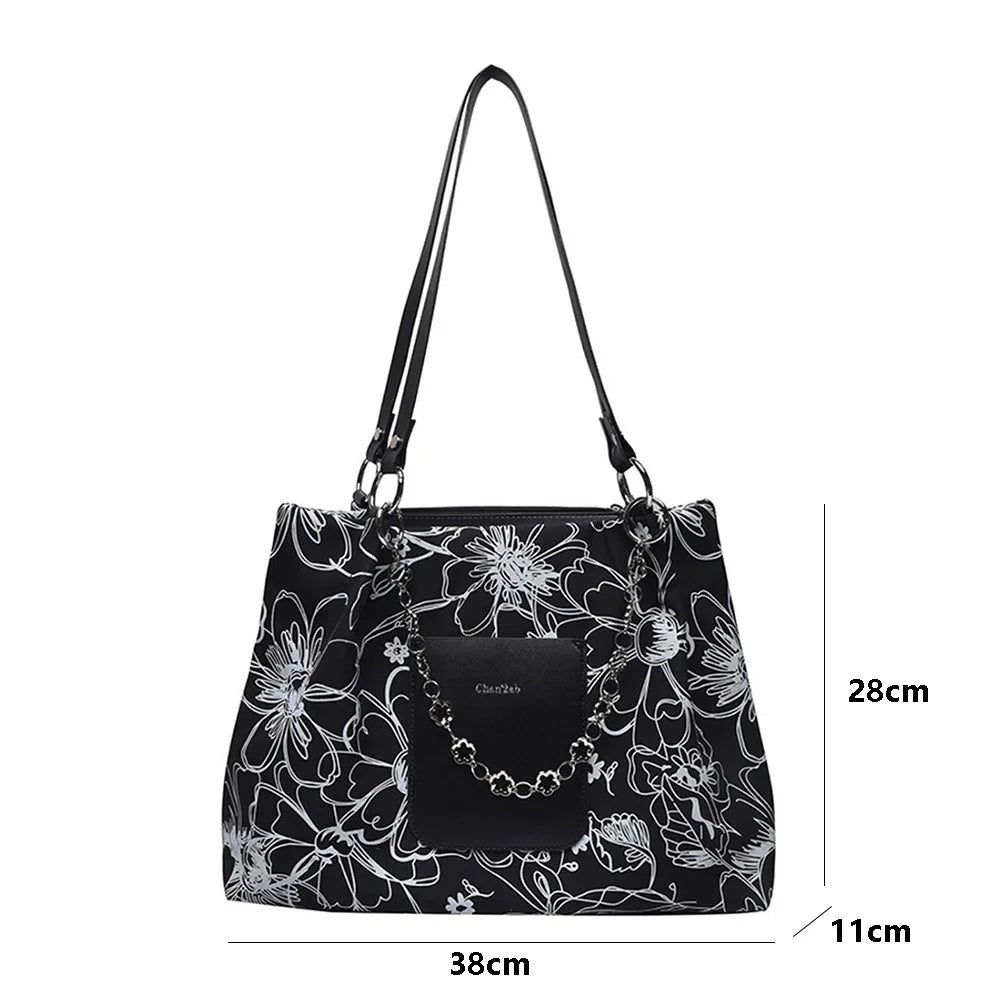 Floral Print Chain Shoulder Bag Large Capacity Tote