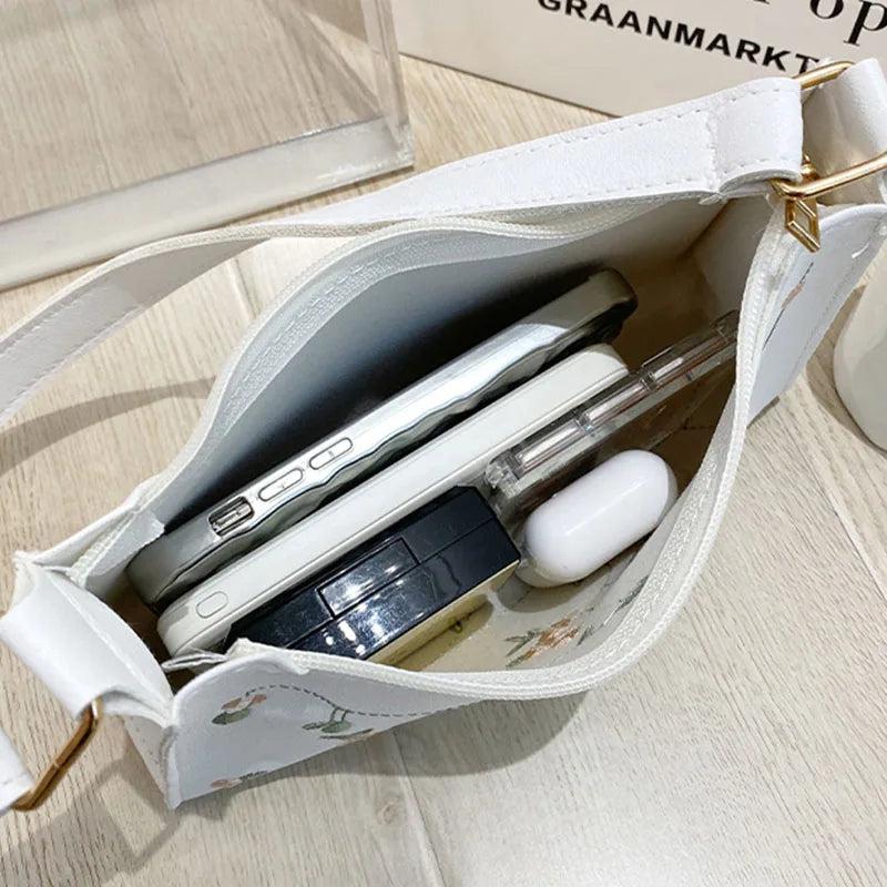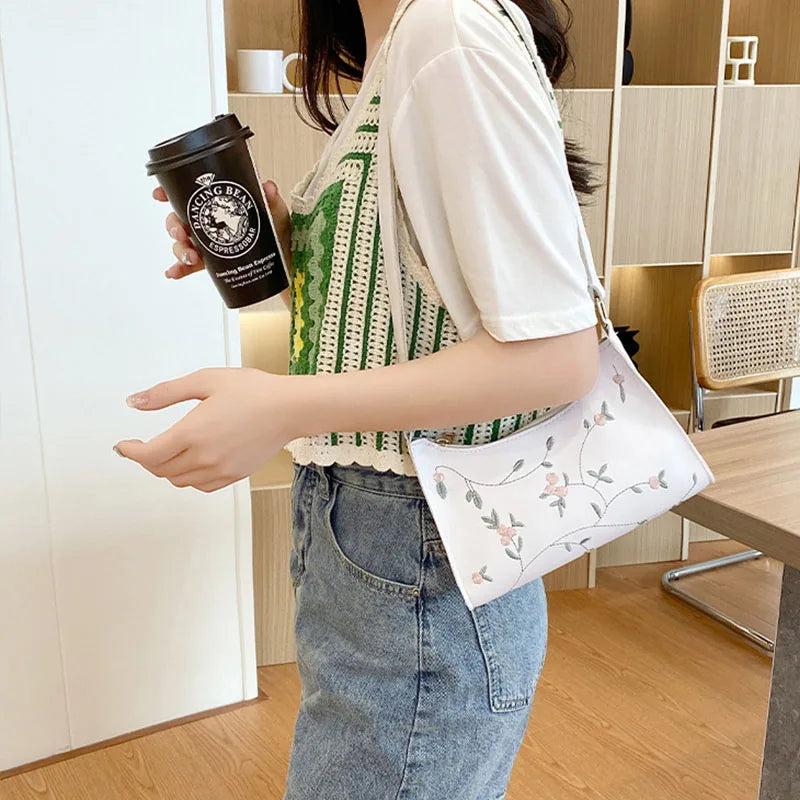 Elevate your style with this flower embroidered shoulder bag. Made of high-quality leather, this solid handbag is perfect for casual outings. Stay stylish and organized with this retro-inspired tote.