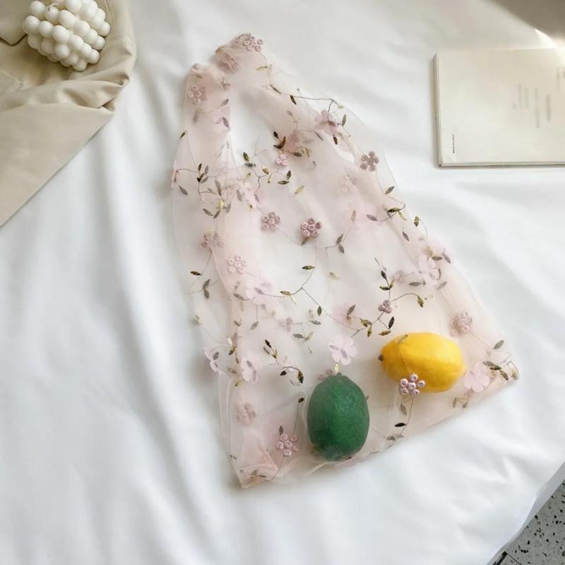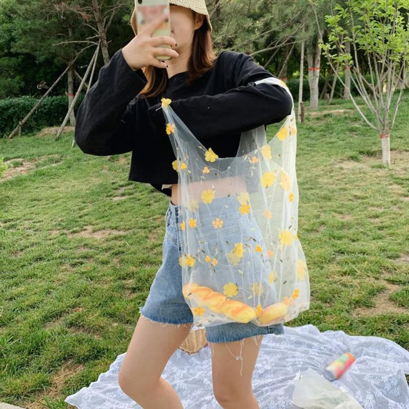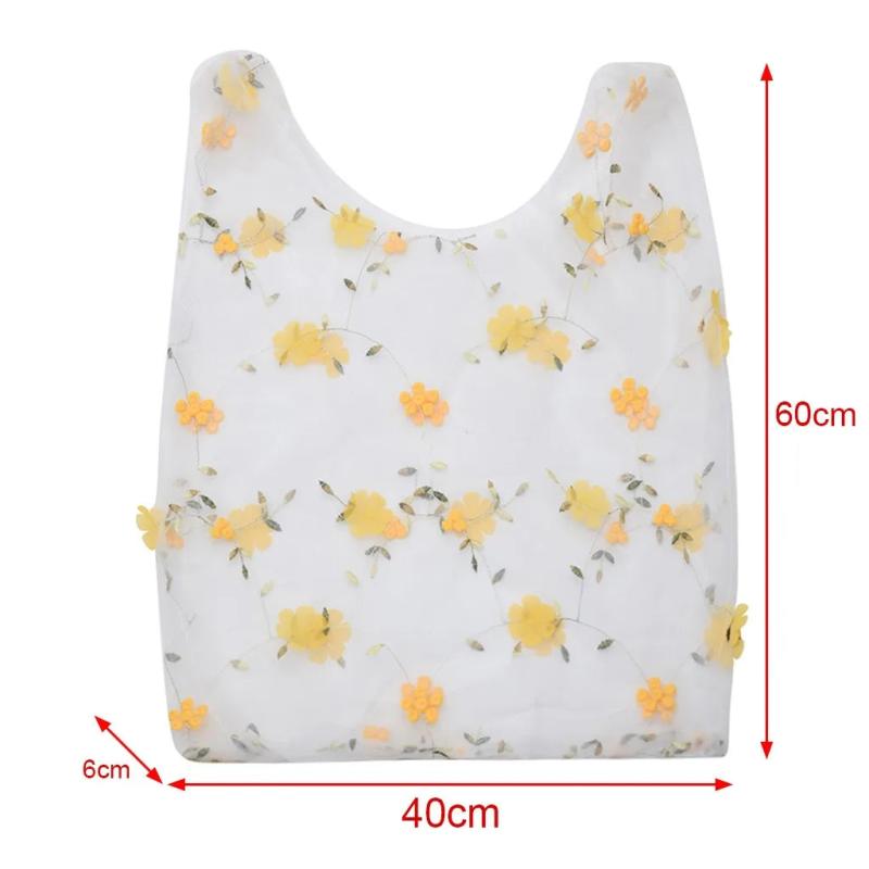 Flower Embroidery Women Handbag Transparent Organza Casual Tote Shoulder Bag