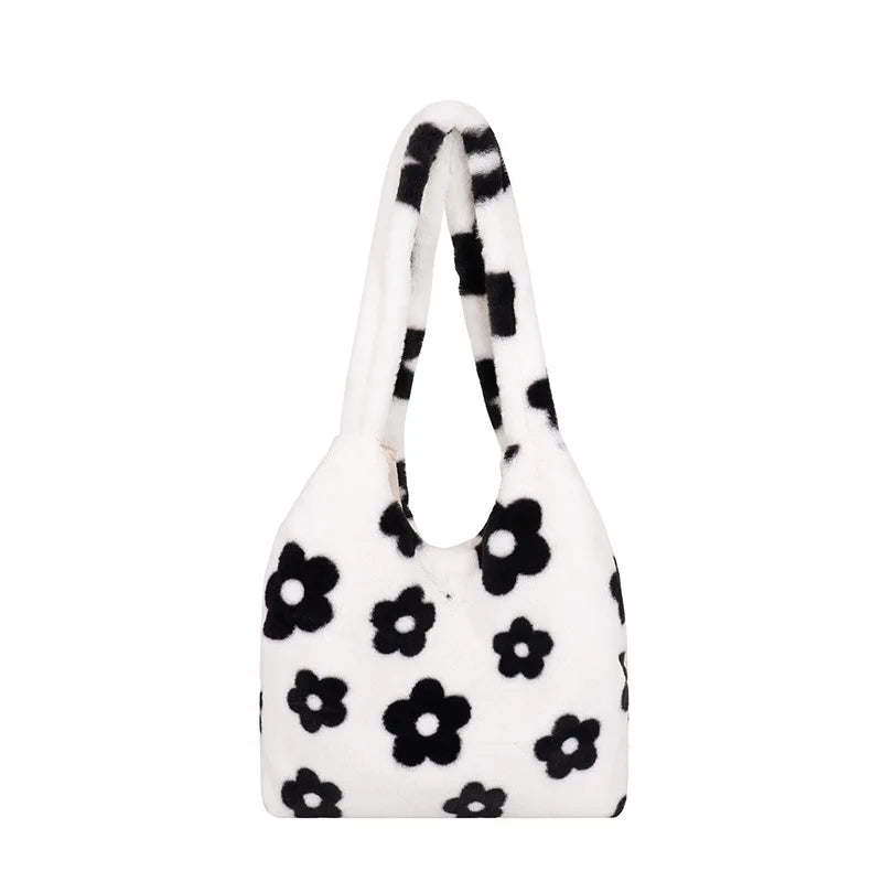 Flower Plush Handbags Lady Shoulder Clutch Purses Large Bags