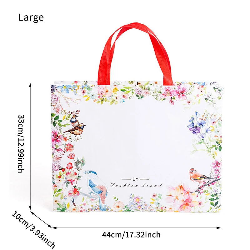 This spacious non-woven grocery shopping bag features a vibrant flower print design. It folds easily for storage and is perfect for carrying groceries or other items. This eco-friendly bag is reusable and durable.