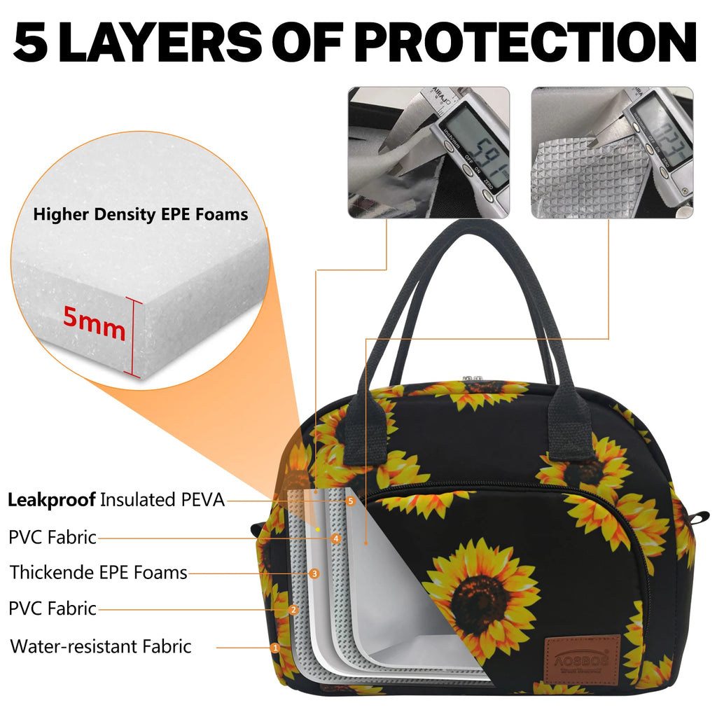 Flower Print Insulated Lunch Bag Thermal Food Picnic Cooler Lunch Box Bag