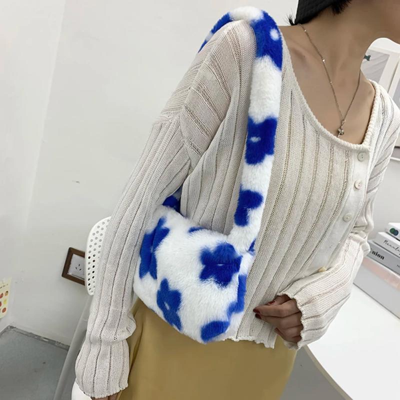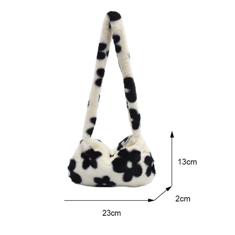 Stay stylish and cozy with this flower print plush shoulder bag, perfect for autumn and winter seasons.