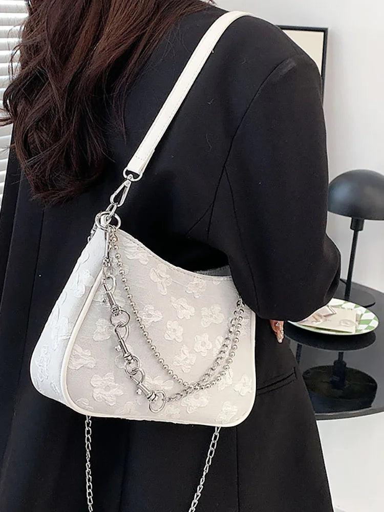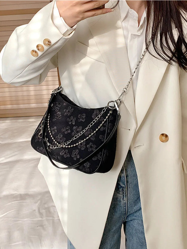 Flower Print Shoulder Crossbody Bag for Women Chain Strap Travel Tote