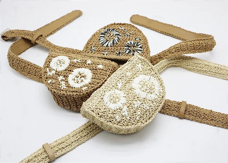Flower Straw Waist Pack men women mobile keys purse grass bag