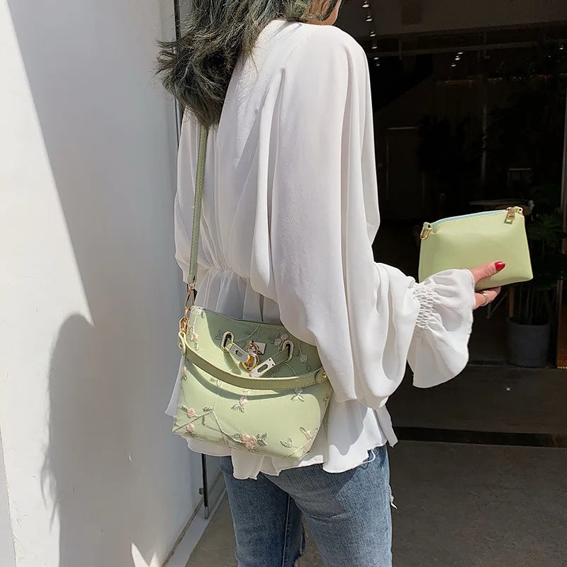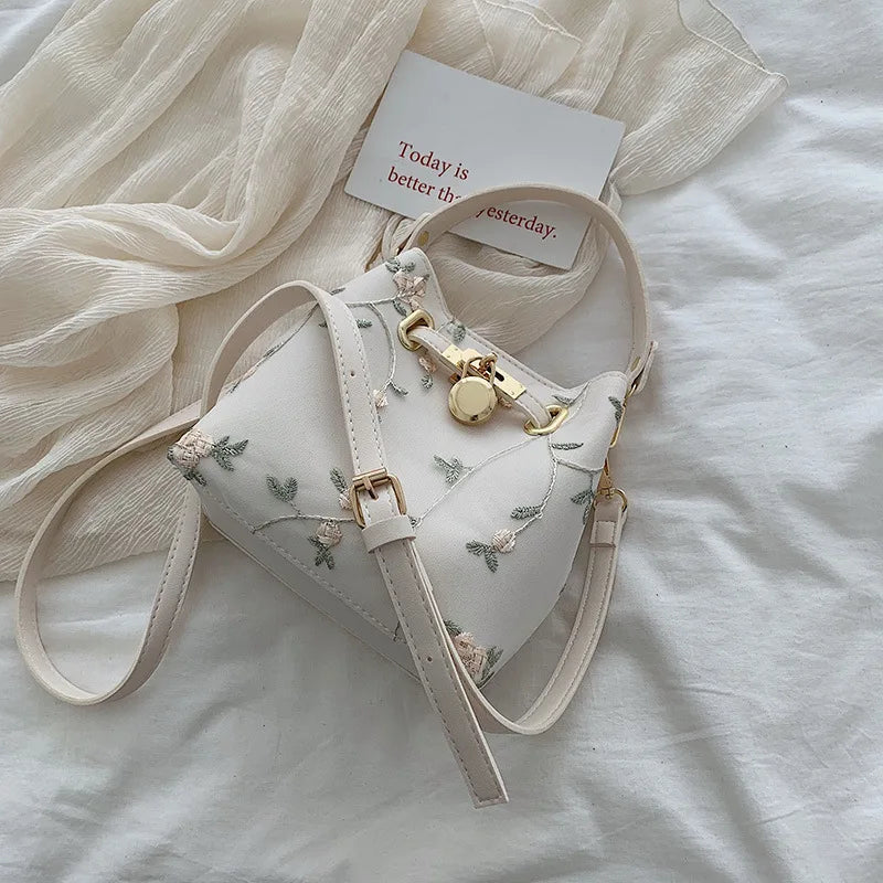 Stylish and trendy crossbody bag with flowers embroidery design, perfect for women on the go.