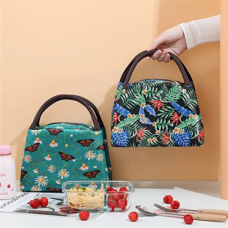 Flowers Thermal Lunch Bags for Women Kids Cooler Ice Pack Work Picnic
