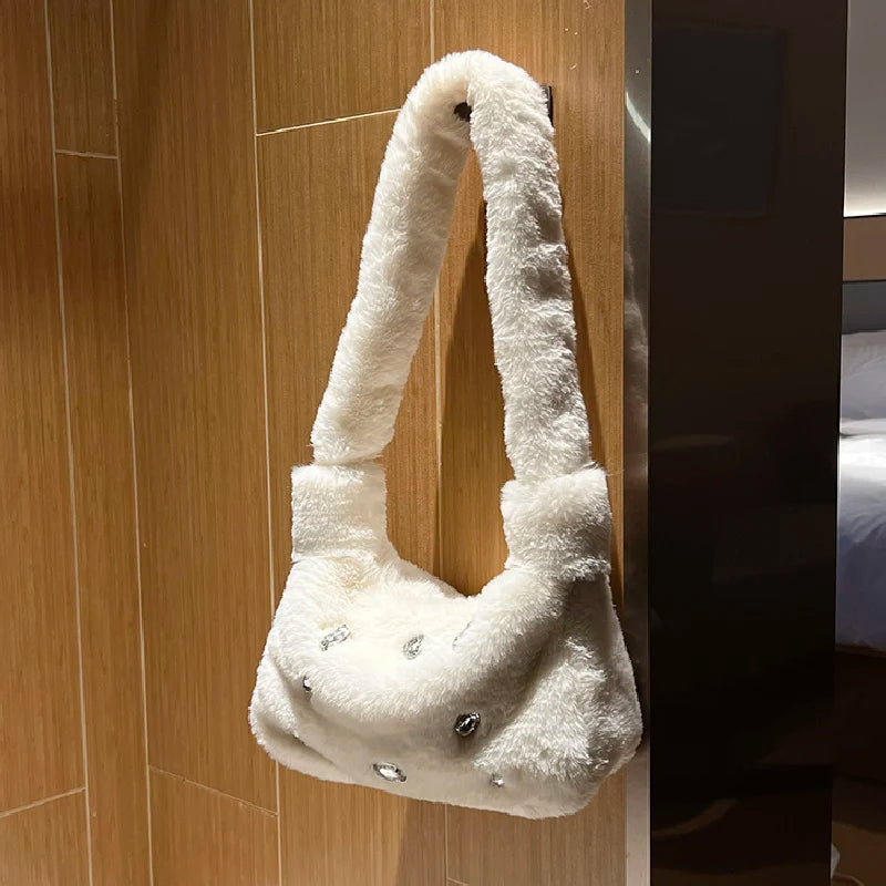Stay stylish and trendy with this plush shoulder bag featuring winter fluffy faux fur. Perfect for everyday use or shopping, this armpit bag adds a touch of elegance to your outfit.