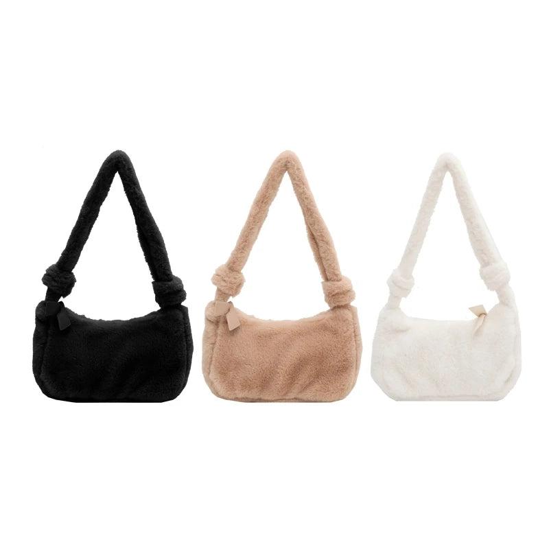 Fluffy Shoulder Bag Women Solid Purse Tote Bags for Autumn and Winter