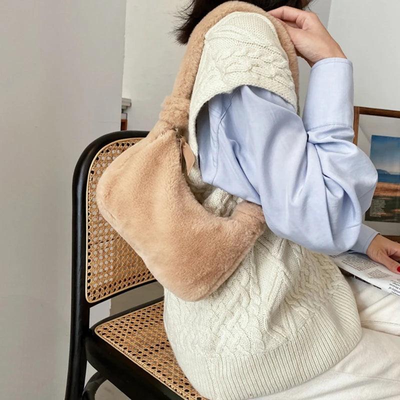Stay stylish and cozy with this plush underarm bag, perfect for autumn and winter. It features a soft and fluffy design that adds a touch of luxury to your outfit.
