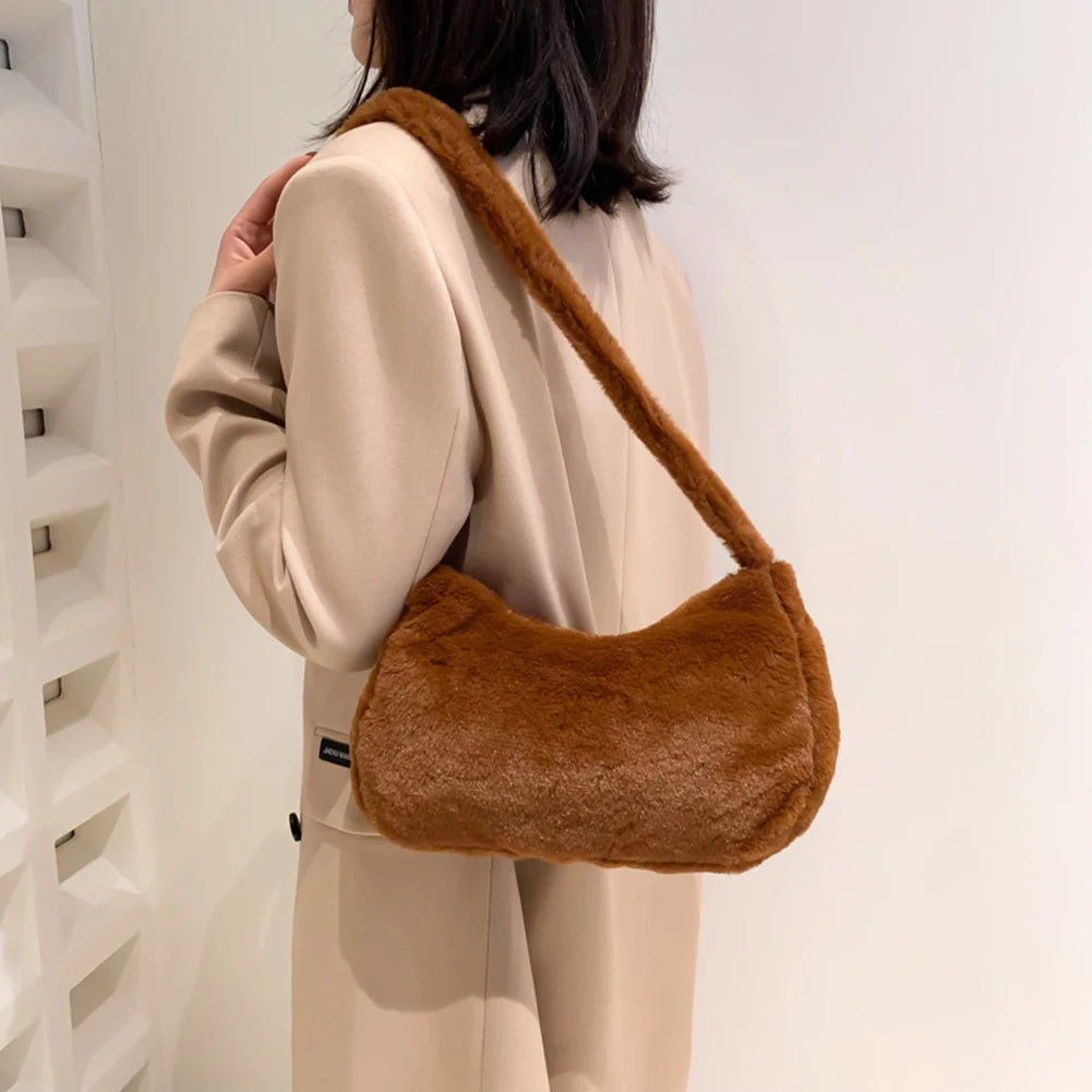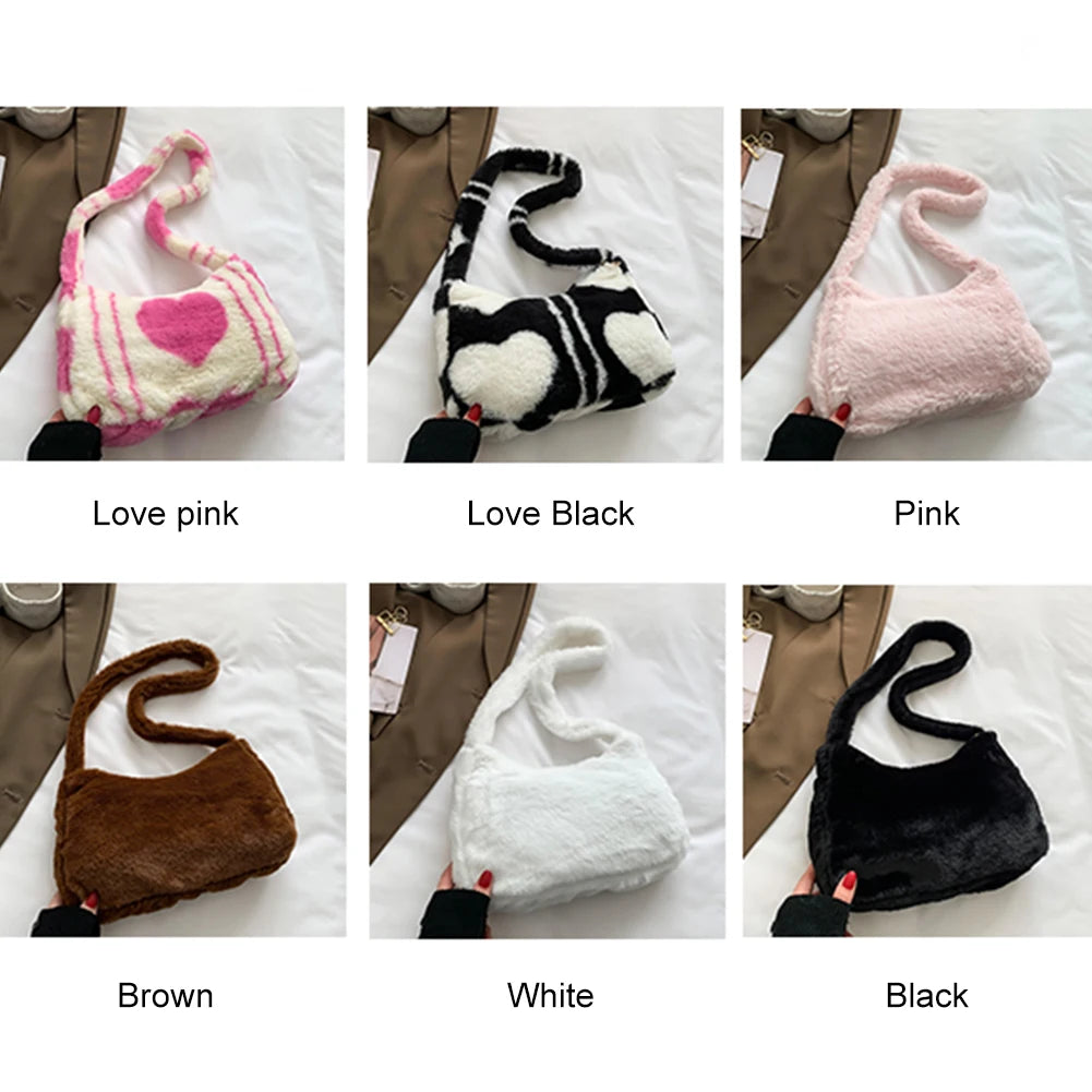 This plush shoulder bag is perfect for autumn and winter, providing a casual and stylish look. It features a fluffy design with a love heart print, making it a trendy accessory. It is lightweight and portable, ideal for everyday use.