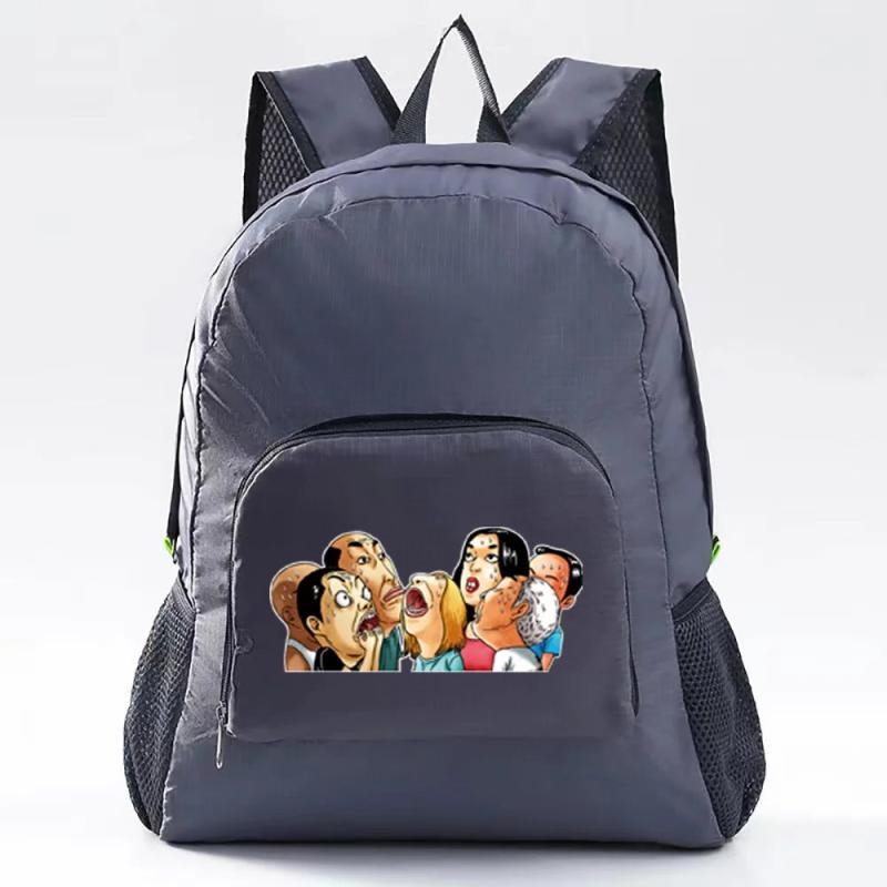 This portable and foldable backpack is designed for outdoor activities such as camping, hiking, and sports. It is lightweight, durable, and features a fun cartoon pattern that appeals to both men and women.