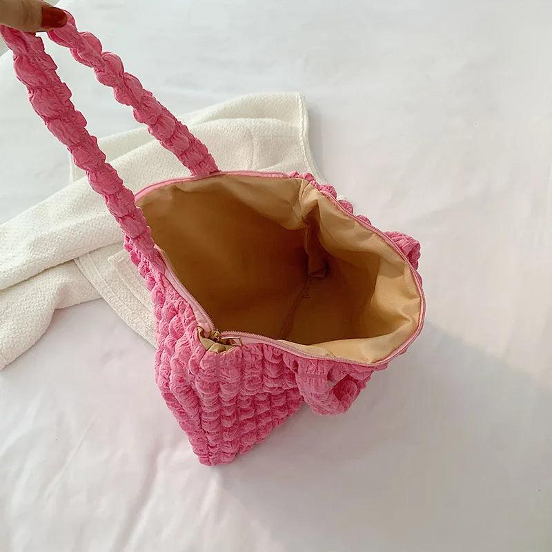 Stay fashionable with this canvas handbag featuring a cloud puff pleated design. Perfect for women on the go!