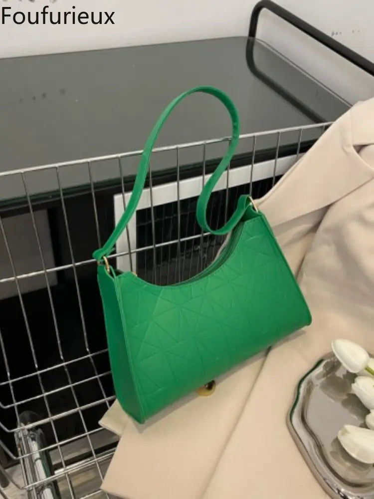Elegant and stylish women's shoulder bag made of high-quality PU leather with a retro design. Features a textured surface and convenient zipper closure.