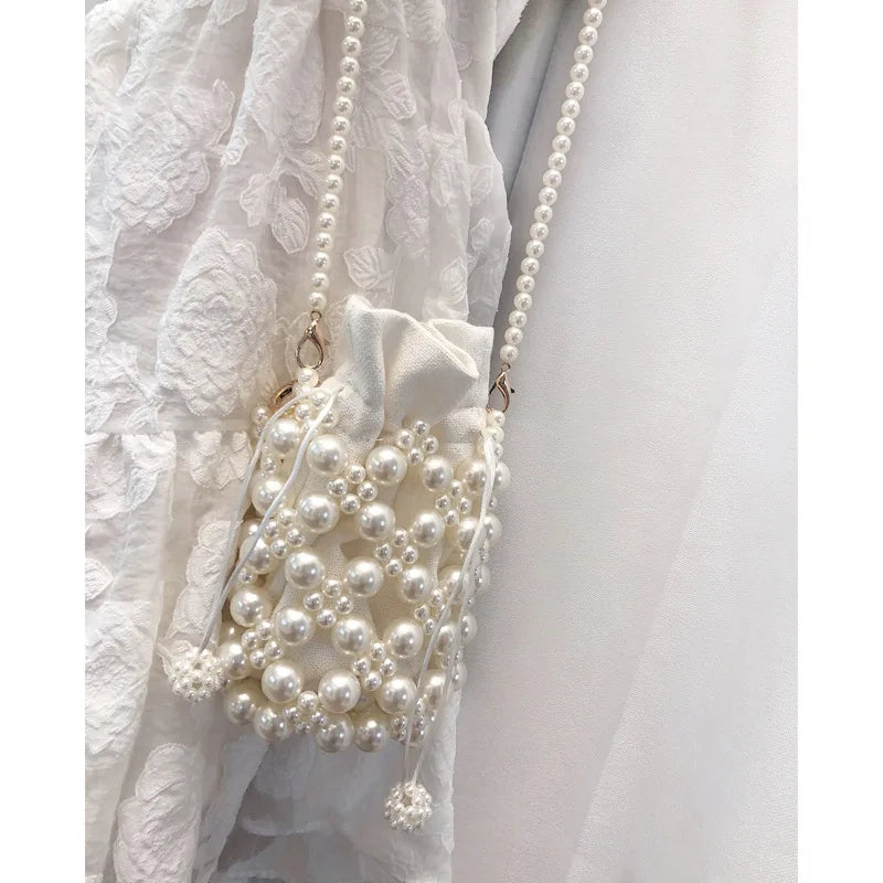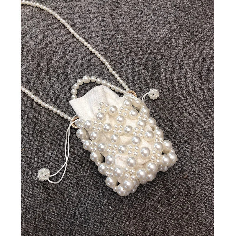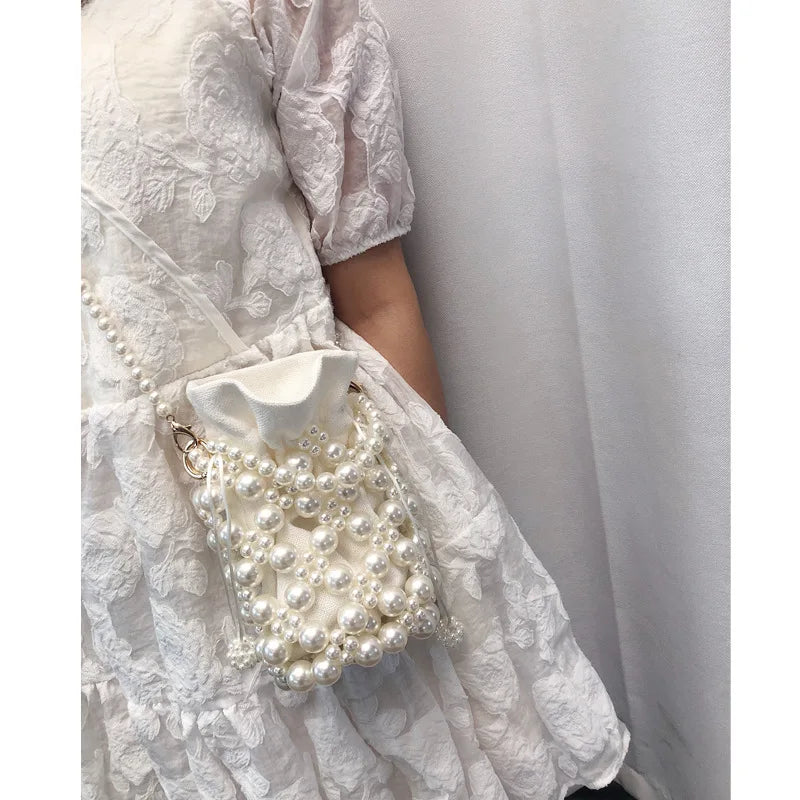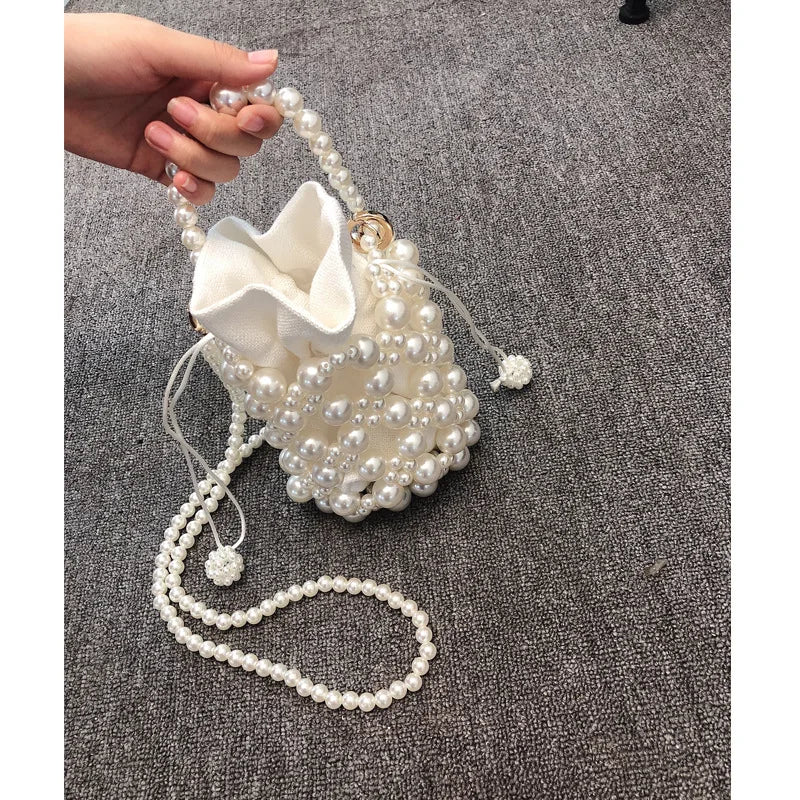 French Hand Woven Beaded Pearl Bucket Bag Hand Carried Messenger Bag