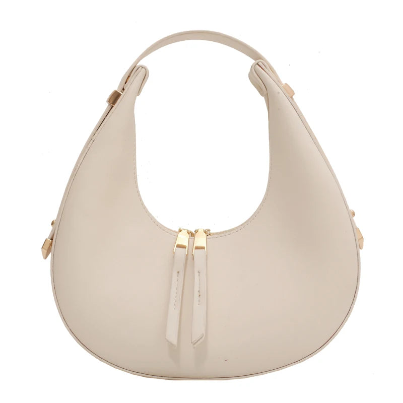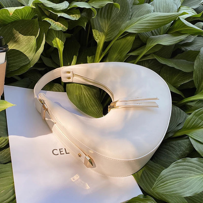 French PU Leather Half Moon Shoulder Bag Winter Women Texture