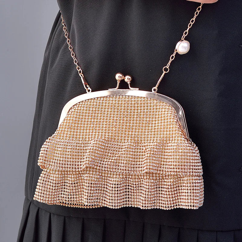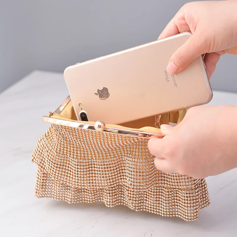 Elegant and stylish evening bag adorned with full diamond-studded tassel, perfect for weddings, banquets, and special occasions.
