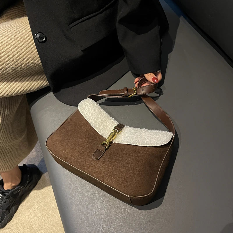 Frosted Messenger Shoulder Bag Plush Female Western Style Handbag