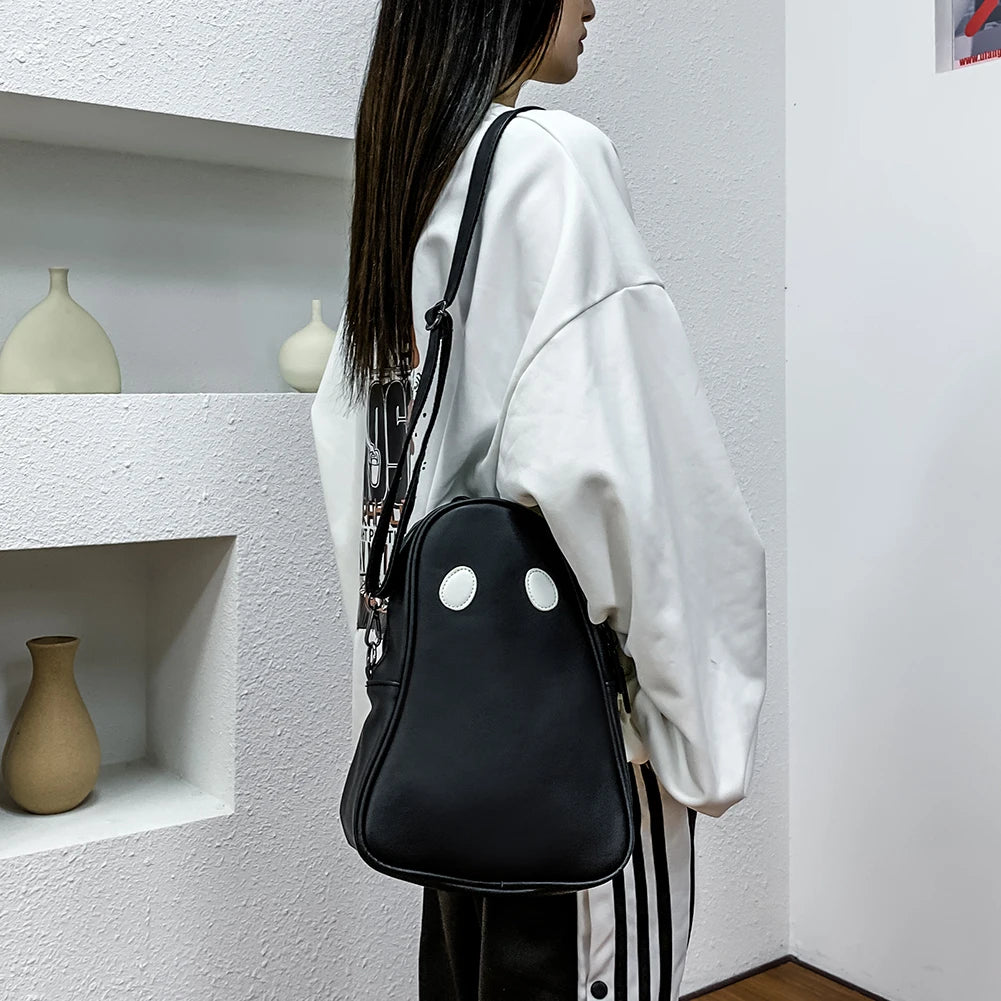 This shoulder handbag features a playful devil ghost design, made of PU leather with a small zipper. Perfect for shopping and travel.