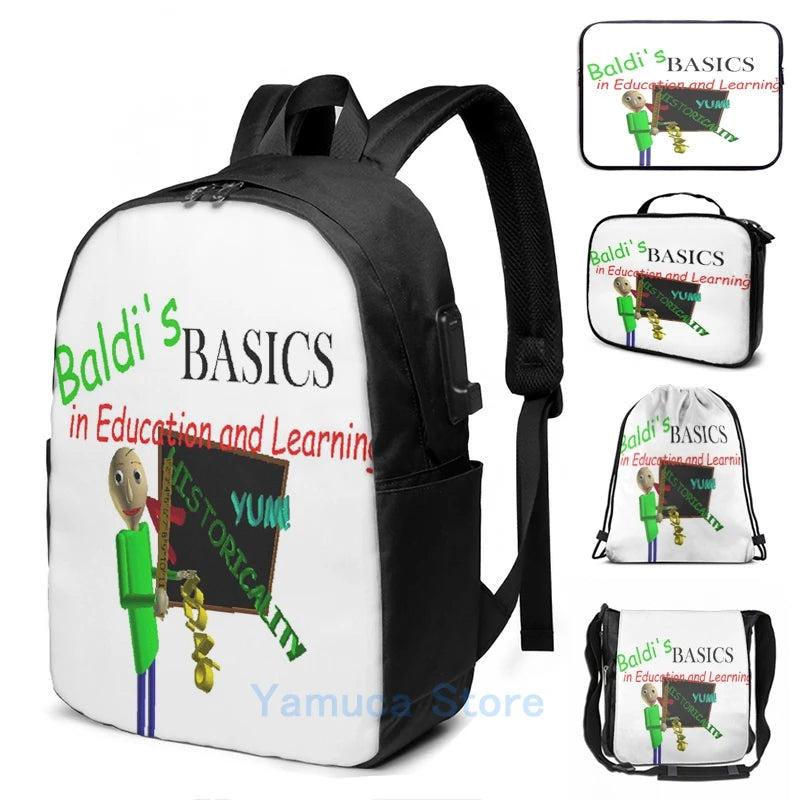 Funny Baldis Basics USB Charge Backpack School Travel Bag