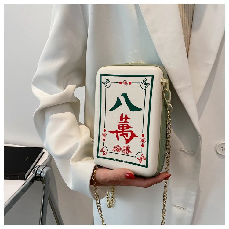 Funny Chinese Mahjong Rich Lucky Shoulder Bag PU Leather Crossbody Handbag Gift