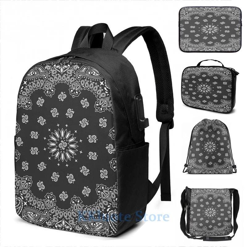 Funny Graphic Bandana USB Charge Backpack Men Women Travel Laptop Bag