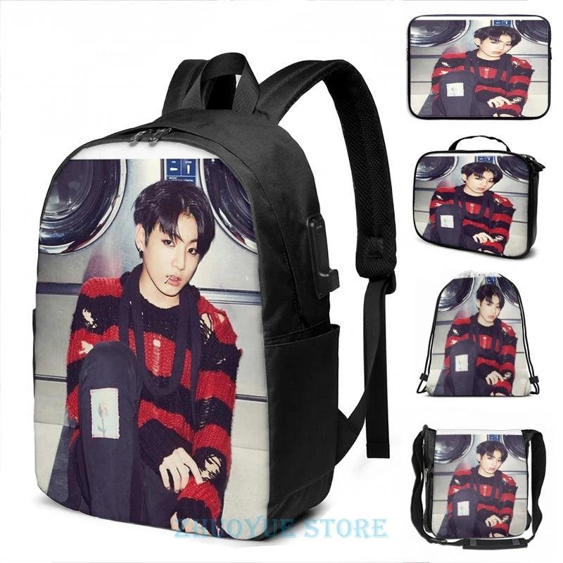 Funny Graphic Print Jungkook USB Charge Backpack School Travel Laptop Bag