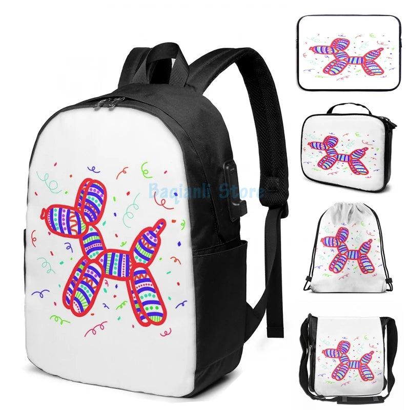 Funny Graphic print Party Balloon Dog 2 USB Charge Backpack School bags