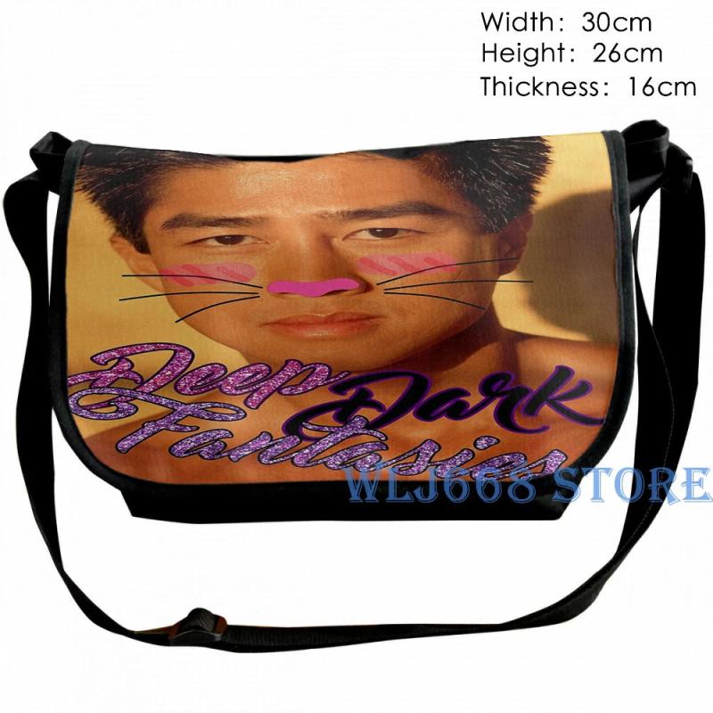 This shoulder bag features a humorous graphic print depicting deep dark fantasies. It is perfect for both men and women as a single shoulder backpack for travel or gym use.