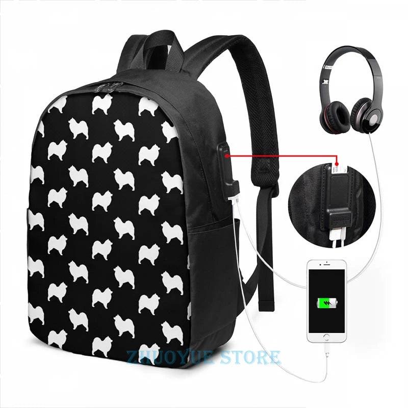 Funny Samoyed Silhouette USB Charge Backpack Men Women Travel Laptop Bag