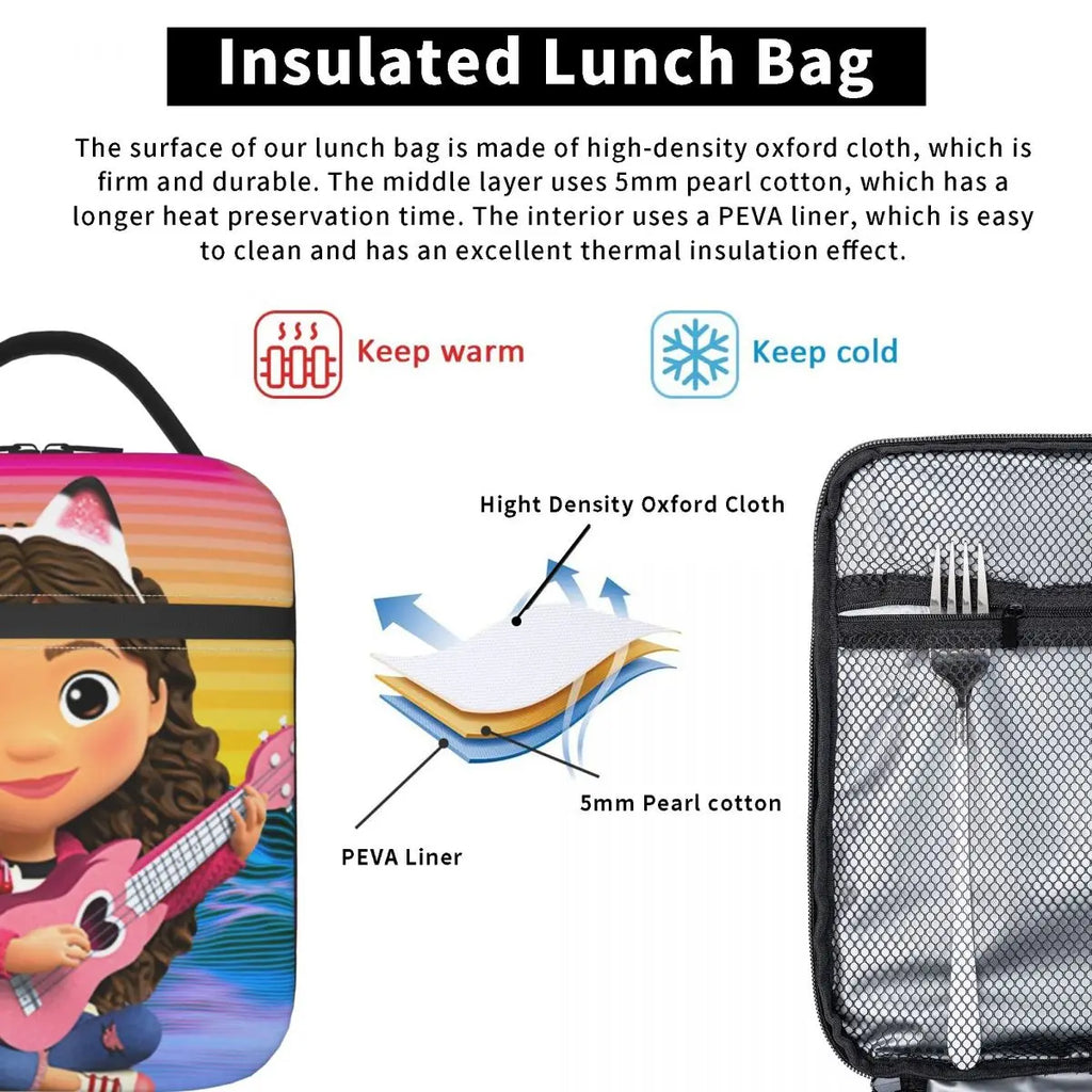 Gabby Cat Anime Dollhouse Insulated Lunch Bag for Work School