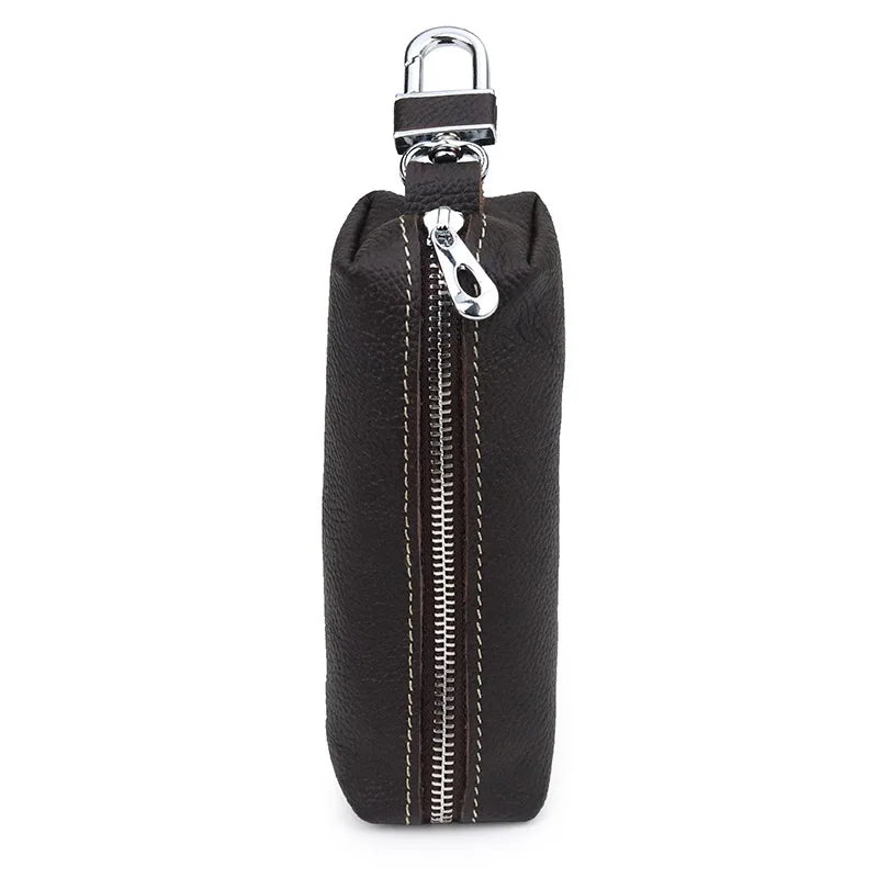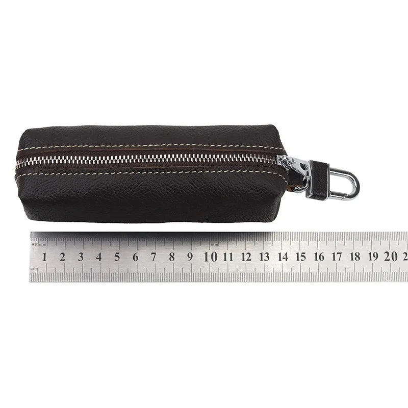 This key case bag is made of real cow leather, perfect for men and women. It features a zipper pocket, suitable for small business owners, housekeepers, and more.
