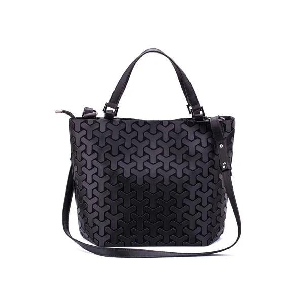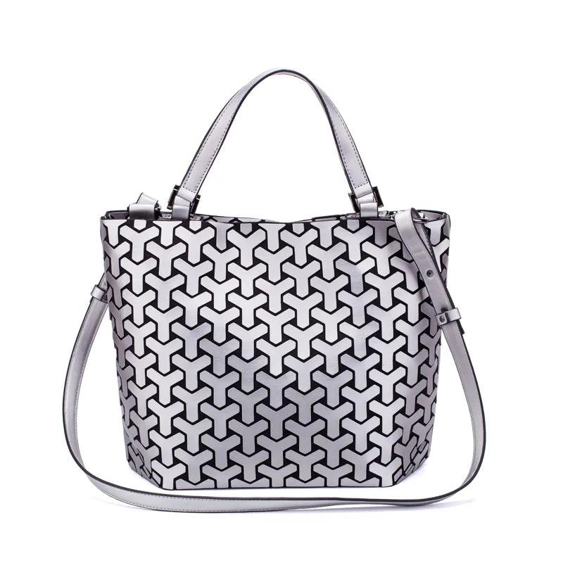 This stylish shoulder bag is perfect for women on the go. It features a unique geometric design and can be folded for easy storage. The bag is versatile and can be used as a handbag or messenger bag.