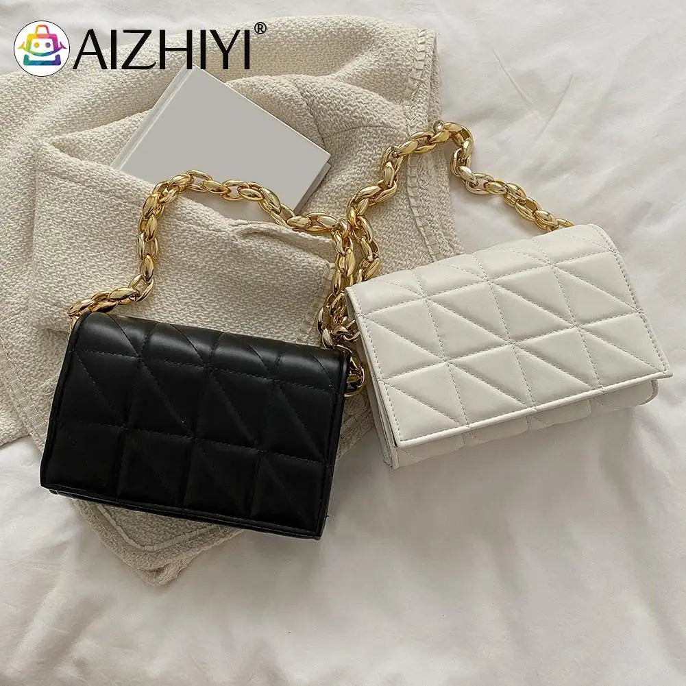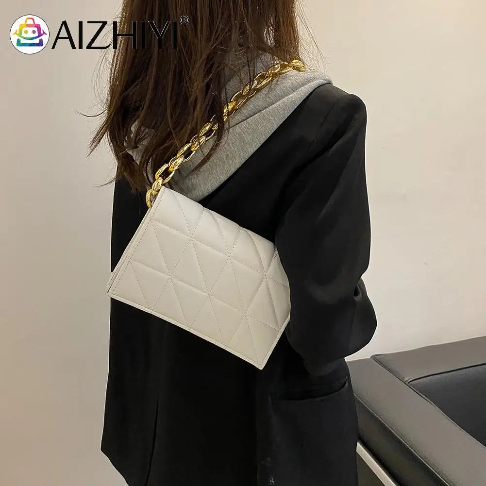This stylish shoulder bag features a geometric pattern, perfect for outdoor shopping. The thick chain adds a trendy touch to your look.