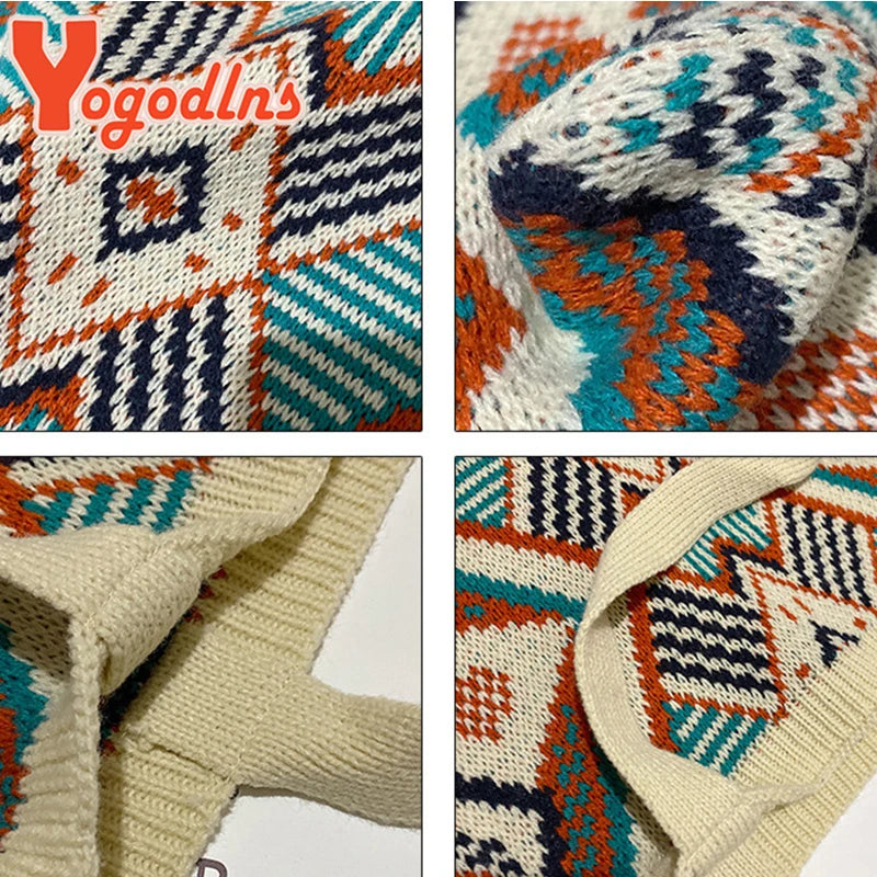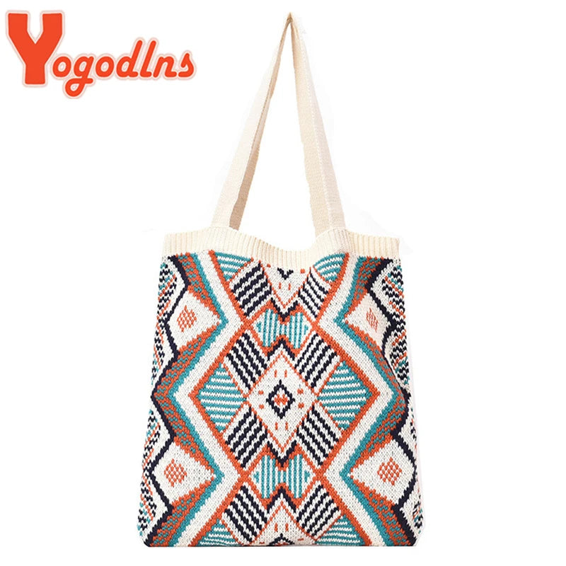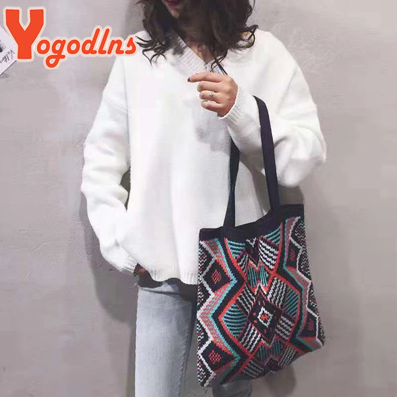 Geometric Patterns Shoulder Bag Knitting Tote Large Capacity Handbag