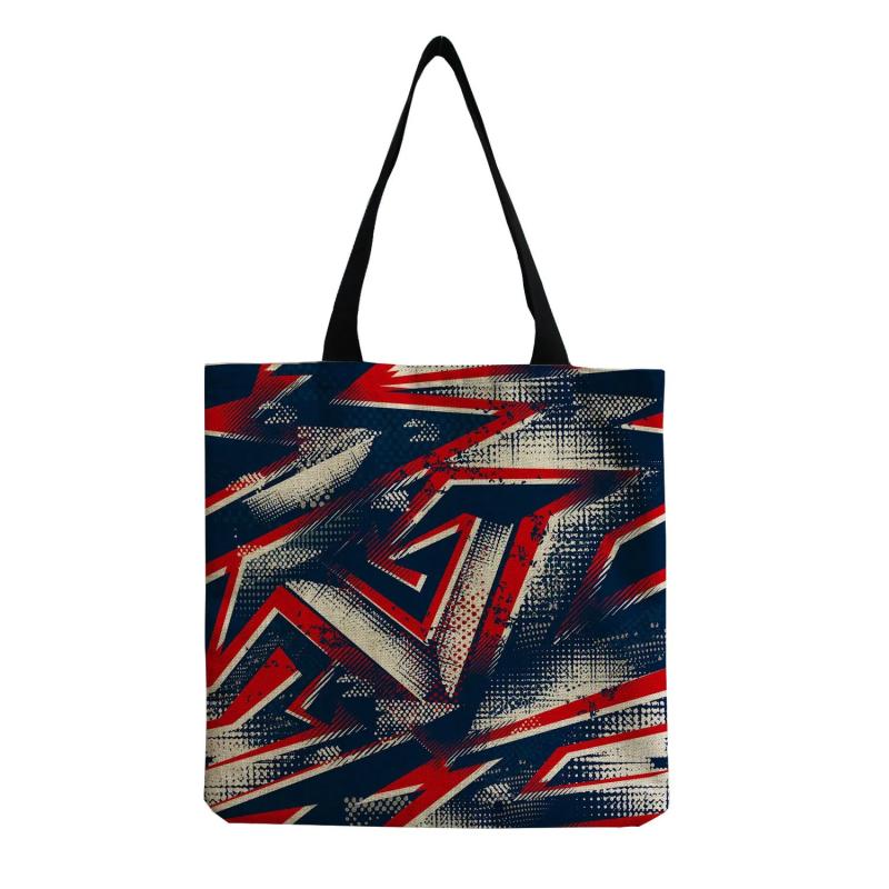 This stylish shoulder bag is perfect for shopping, the beach, or as a handbag. It features a unique geometric print design.