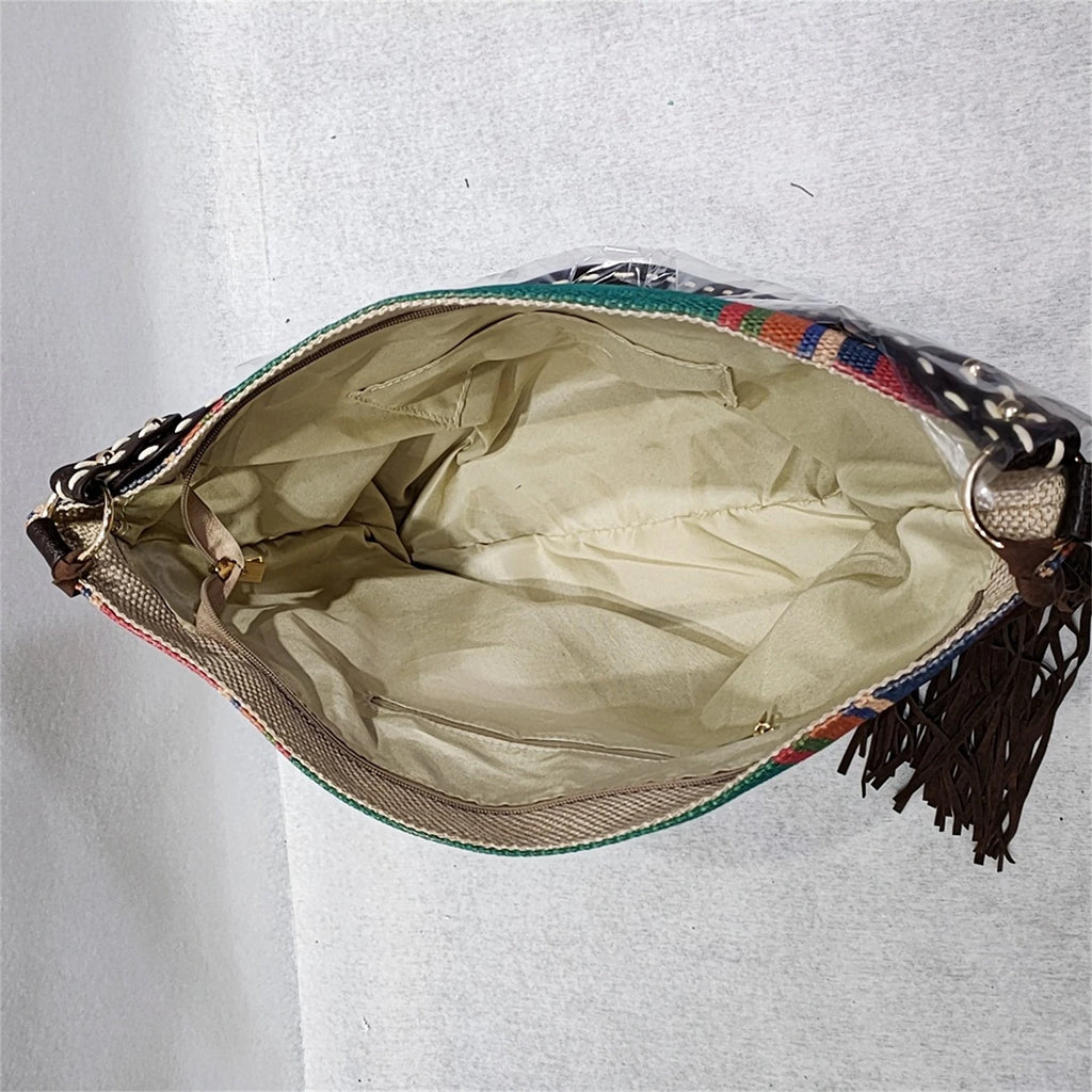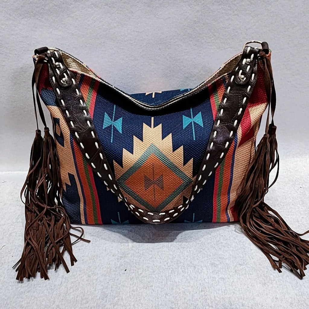Geometric Print Retro Tassel Shoulder Bag