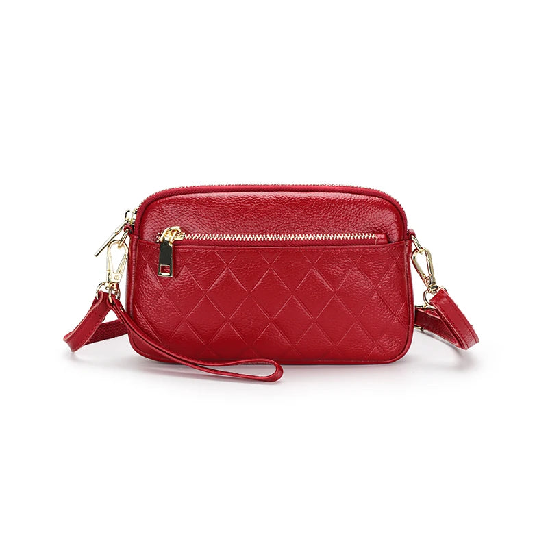 Upgrade your style with this chic geometric messenger bag made from 100% cow leather. Perfect for carrying essentials like your phone and more.