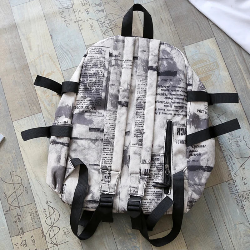 This large-capacity backpack is perfect for school or travel. It features graffiti designs and is suitable for both men and women.