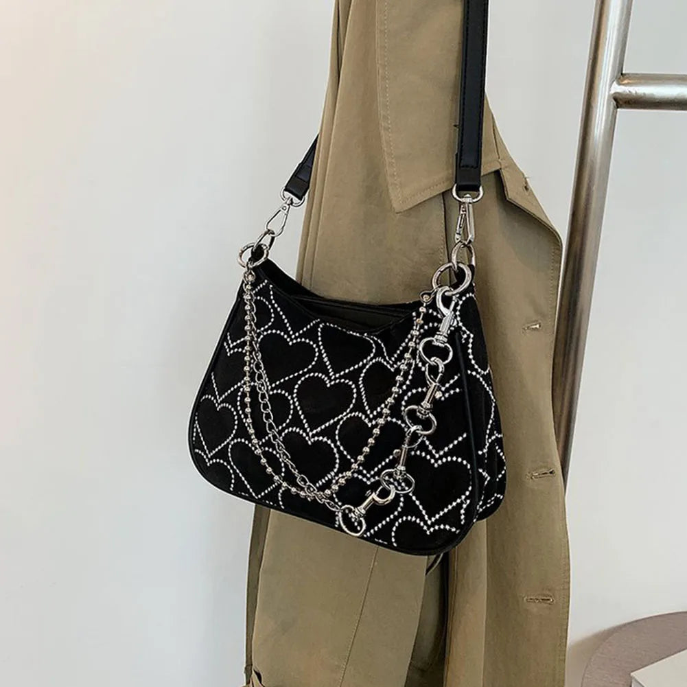 GIGIFOX Gothic Hot Goth Heart Chains Crossbody Shoulder Bags Purse Women