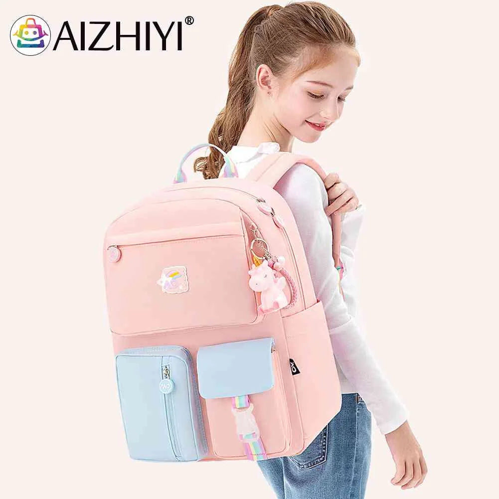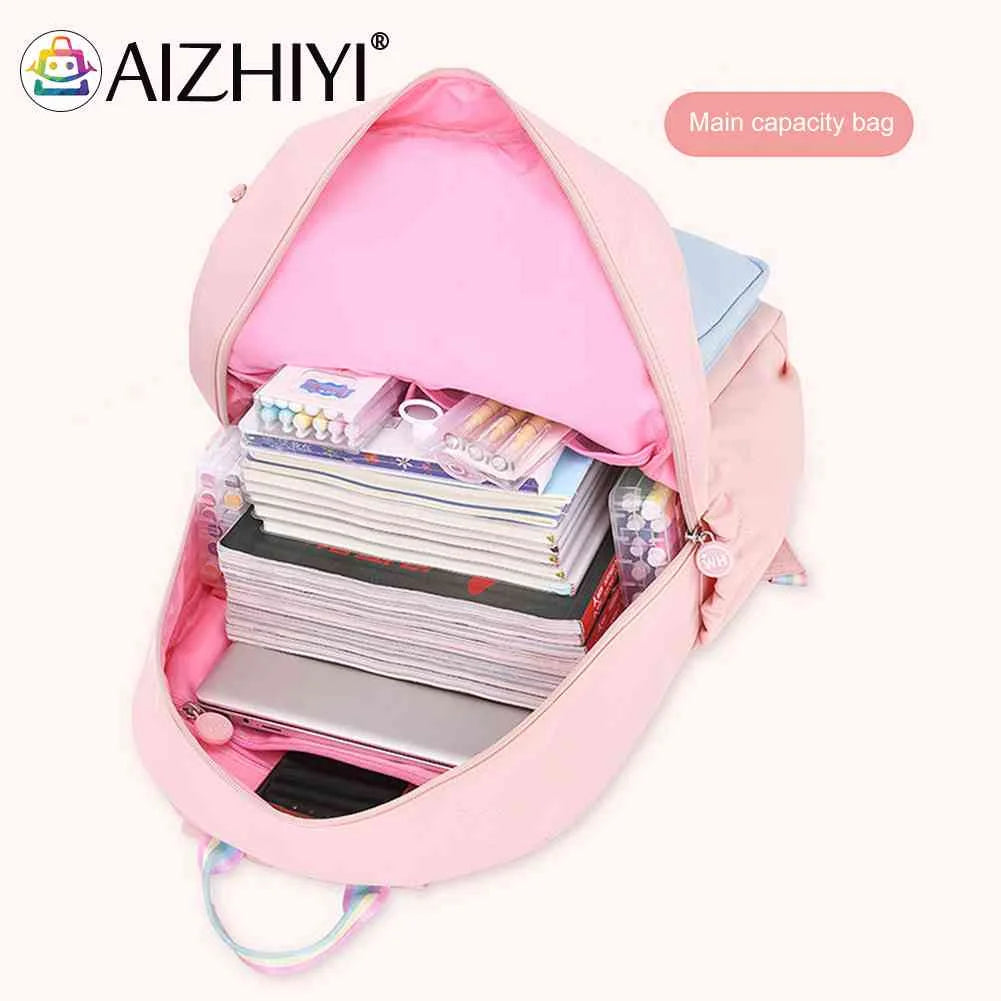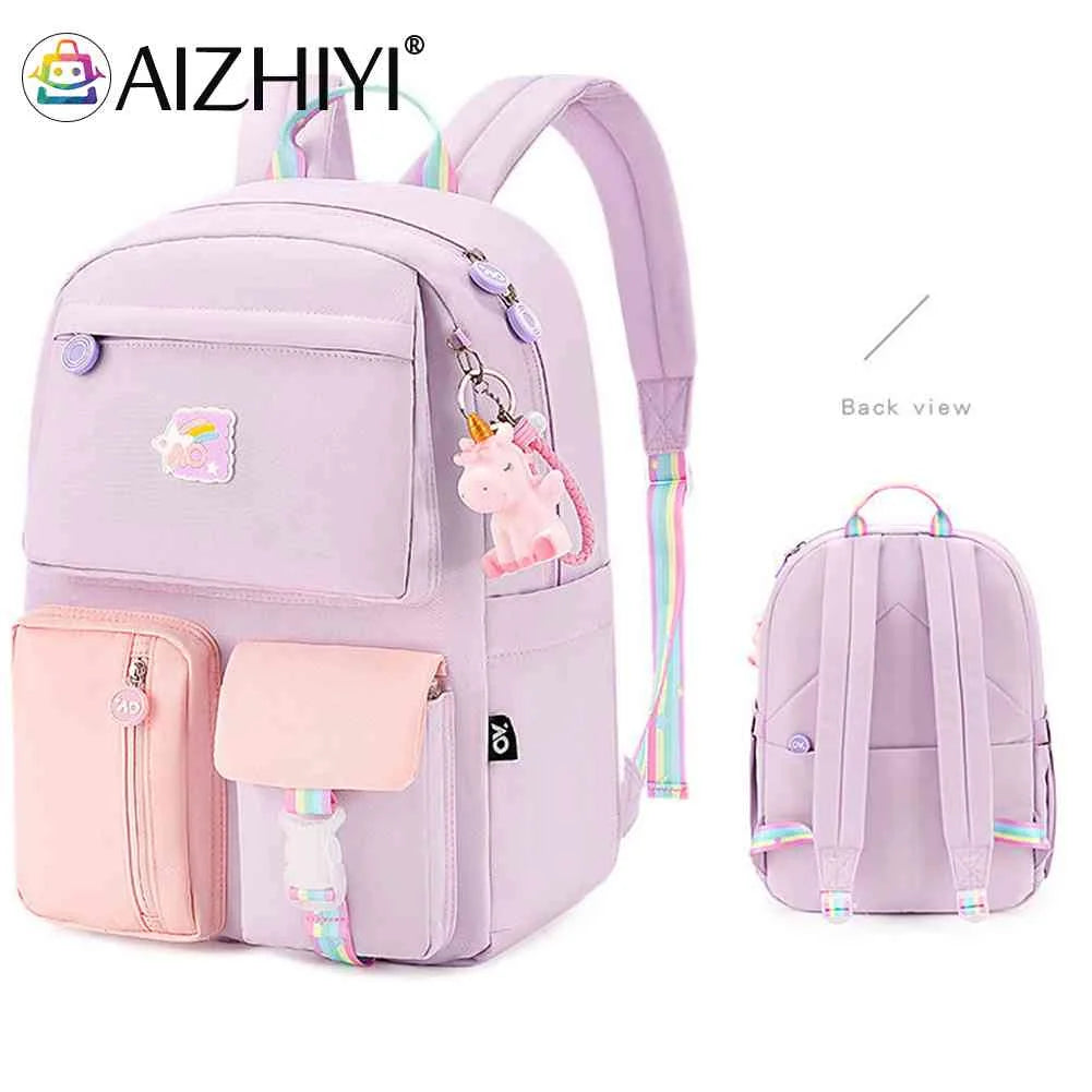 This stylish backpack is perfect for middle school kids and women. It features a cute cartoon design and comes with a pendant accessory. Ideal for casual use or travel.