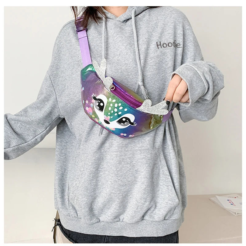 Girls Cartoon Sequins Waist Bag Waterproof PVC Small Deer Belt Crossbody