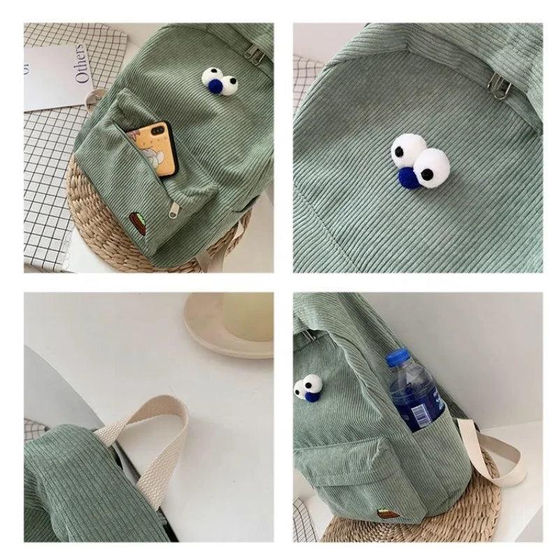 - Stylish corduroy backpack for high school girls