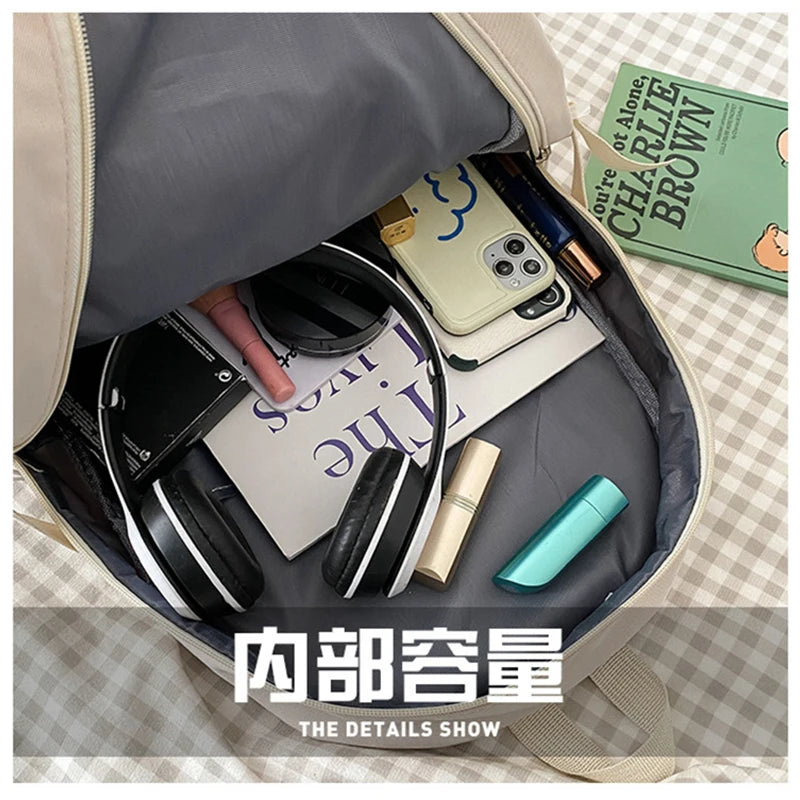 Girls High School Student Backpack, Large Capacity, Preppy Style