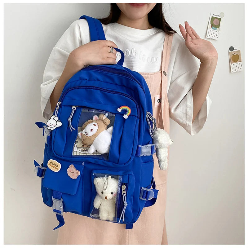 Description:This school backpack is designed for junior high school students, offering a spacious interior for books, notebooks, and essentials. It features a stylish preppy design that appeals to young girls.Features: Spacious backpack for high school students Preppy style design for a trendy look Ideal for carrying books, notebooks, and more...