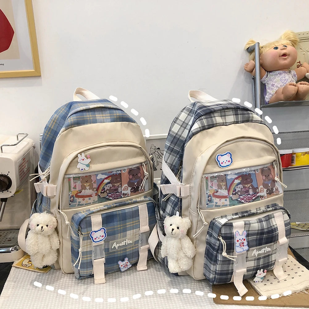 Girls Patchwork School Bag Plaid Large Capacity Rucksack Female Double Shoulders